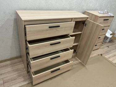 Соберём комод по инструкции изготовителя и установим в нужном месте. Работу выполним за 1–2 часа. Будет шумно.