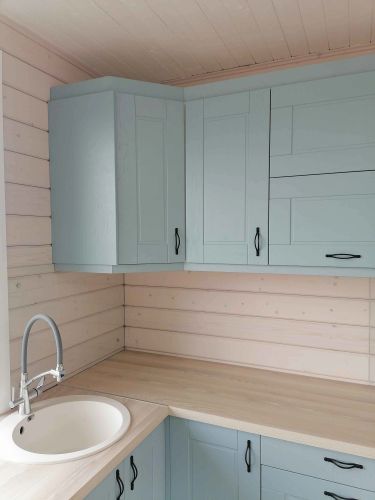Соберём каркасы, навесим шкафы, дверцы и фурнитуру. Всё отрегулируем. Установим, мойку с сифоном и смесителем.